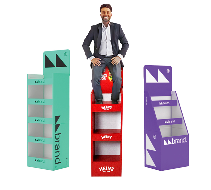 Support up to 150 pounds (70 kilograms) per shelf. Impressive for a foldable cardboard display!
